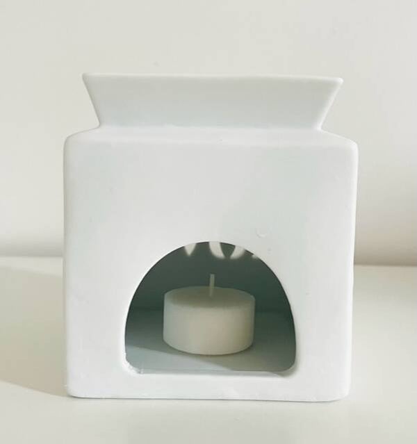 Deze witte keramische theelichthouder kan je ook gebruiken als oliebrander of leg een geurblokje in de ingebouwde schaal!