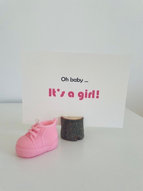 Hand gegoten* kaars in de vorm van een babyschoentje.