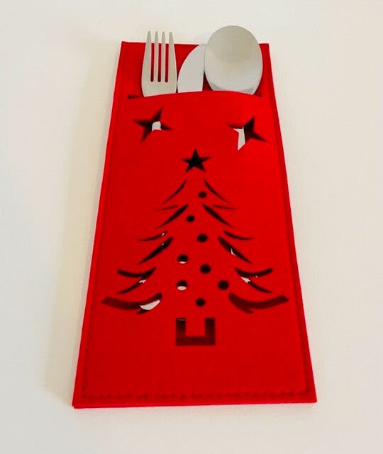 Praktisch én als versiering te gebruiken op de feesttafel!De gasten gaat met een glimlach het bestek uit deze zakjes halen!Kleuren: licht-grijs, kerst rood, donker- grijs