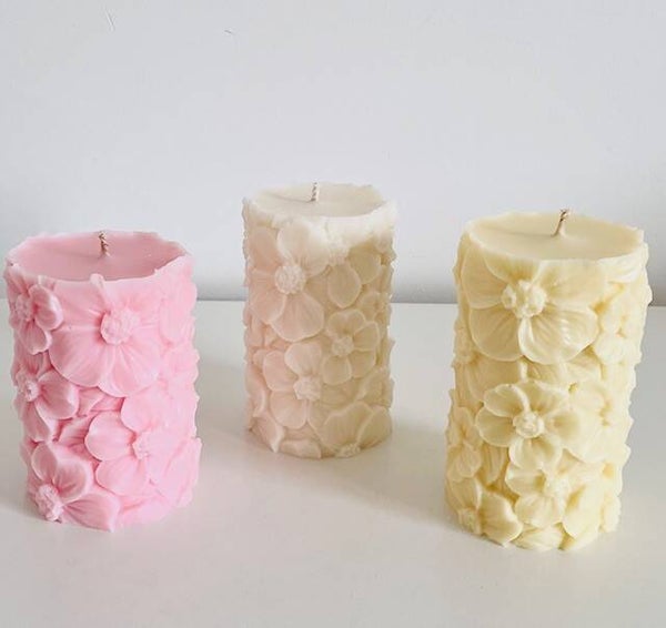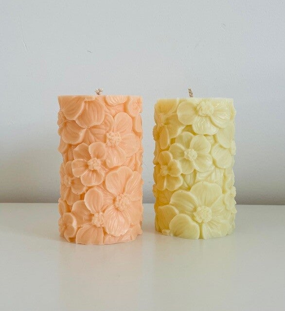Hand gegoten stompkaars bloemenprint met geuroptie