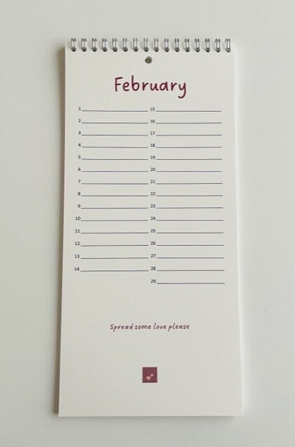 Verjaardagskalender met elke maand een nieuwe en leuke quote!Voorzien van een ophangoog.Formaat: A4Materiaal: FSC- gecertificeerd papierGemaakt in België.